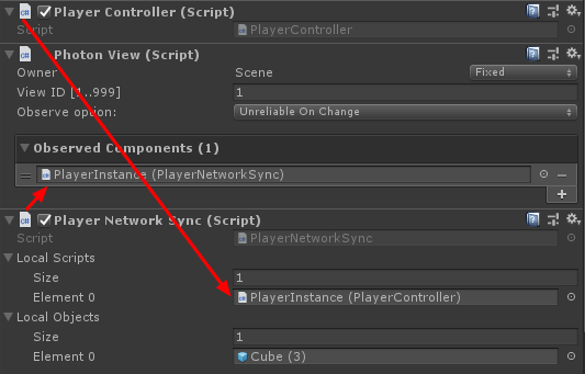 }- Добавьте скрипт PlayerNetworkSync.cs в PlayerInstance и назначьте его наблюдаемым компонентам PhotonView.