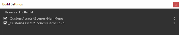 - Добавьте MainMenu и GameLevel в настройки сборки.