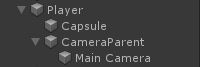 - Создайте новый GameObject, назовите его "CameraParent" и переместите его внутрь объекта "Player", измените его положение на (0, 1.64, 0).
