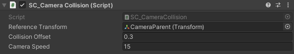 }- Прикрепите скрипт SC_CameraCollision к основной камере.