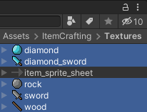 Например, приведенная ниже комбинация соответствует этому рецепту: rock,,rock,,rock,,rock,,wood (ПРИМЕЧАНИЕ: для вас это может быть по-другому, если ваши спрайты имеют разные имена).
