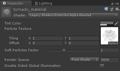 - Измените его шейдер на "Legacy Shaders/Particles/Alpha Blended"